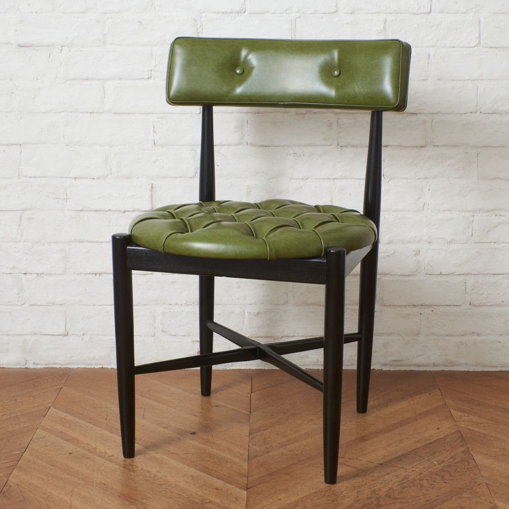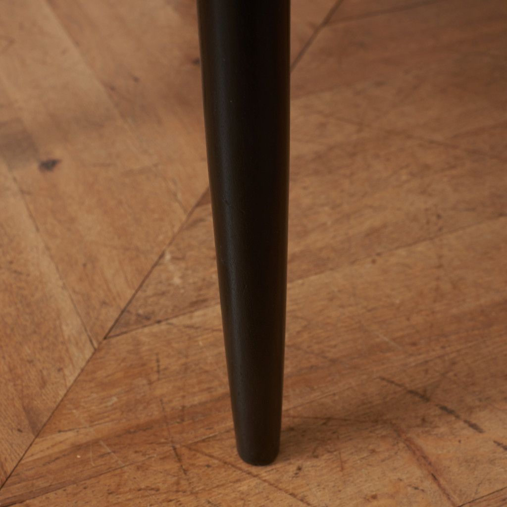 フレスコシリーズのダイニングチェアの中でも最も人気が高い定番モデル。クッション性の高い丸座とクッション付きの背もたれを備えており座り心地はピカイチ。うっすらと弧を描く背もたれの曲線はG-PLANのラウンドダイニングテーブルのエッジラインに合わせることで一体感のあるコーディネートが可能。脚からプライウッドの背もたれへ続くなめらかなラインが非常に美しいため背面から見ても非常に絵になる椅子です。