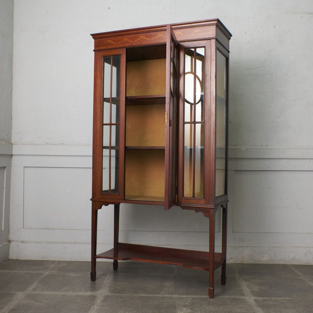 マホガニー材を使用した、英国アンティーク ガラスキャビネットです。