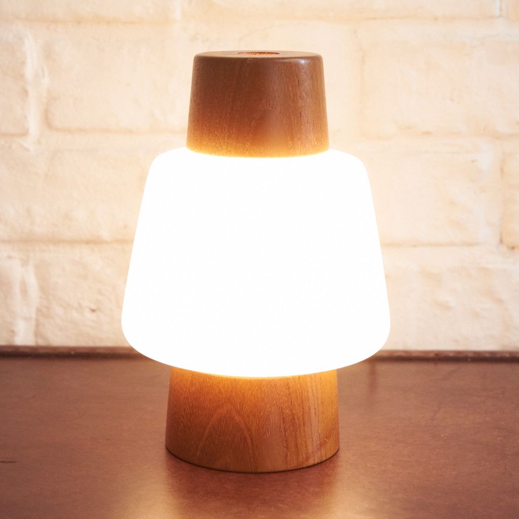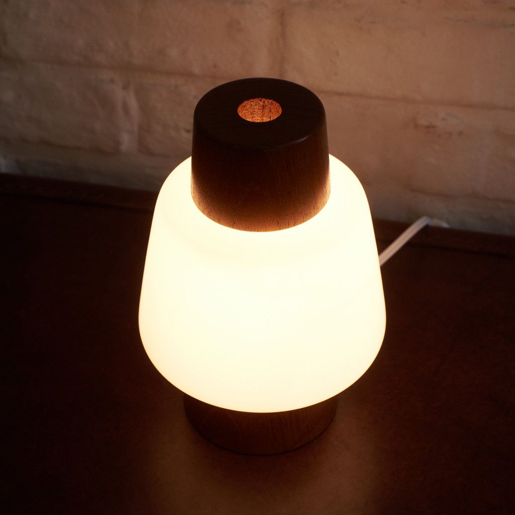 チーク材を使用した、シンプルで洗練されたデザインが美しいテーブルランプ。ガラスシェードが作り出す柔らかな灯りが空間を優雅に灯します。北欧モダンスタイルやミッドセンチュリーとの相性はもちろん、空間のアクセントにもぴったりのお品です。