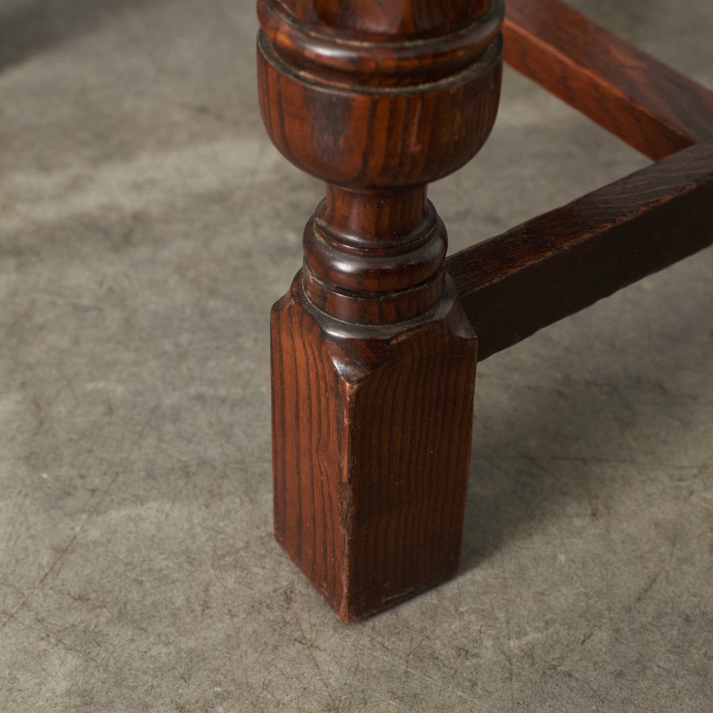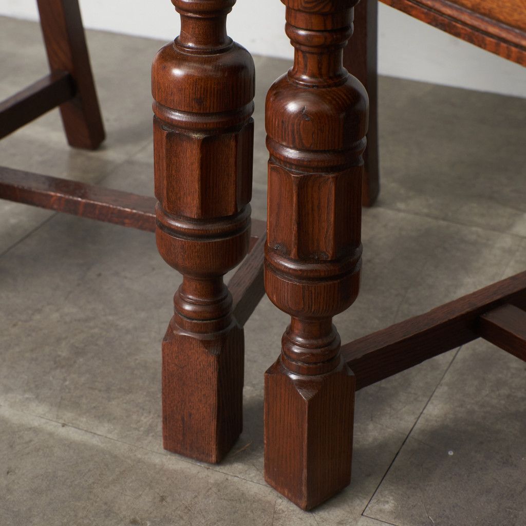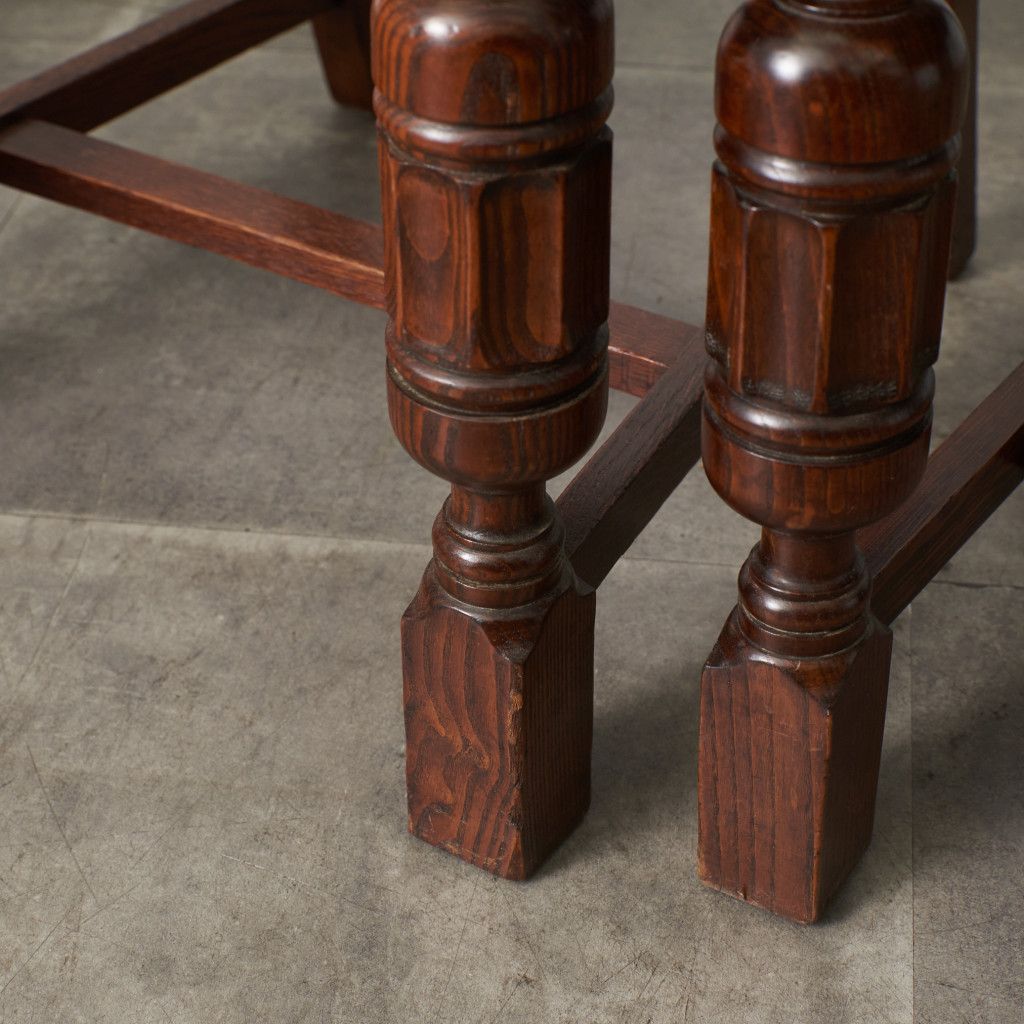 背もたれの木彫刻や脚部に施されたバルバスレッグが美しい上品なダイニングチェア。古き良き西欧の伝統を感じさせるクラシカルなデザインで、使い込まれて程よく古びた風合いが素朴で優しい雰囲気を演出します。