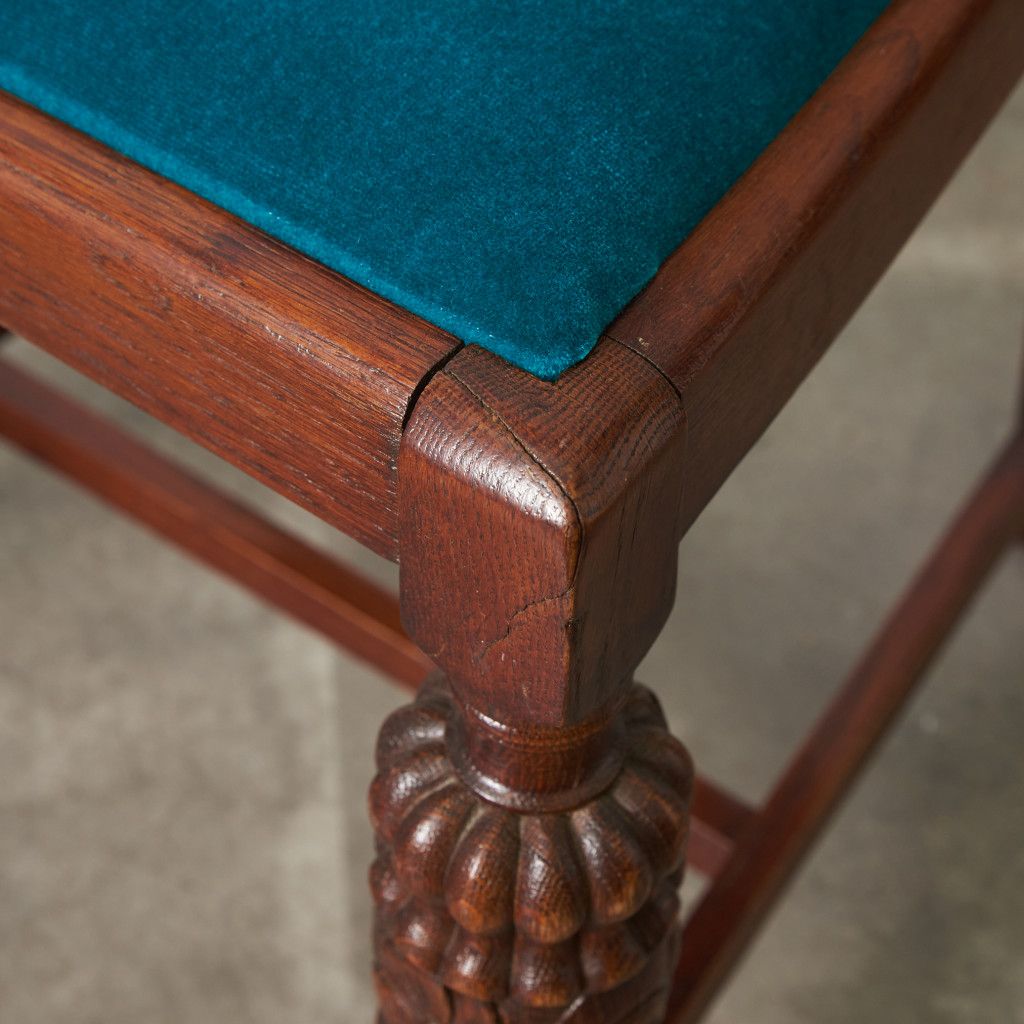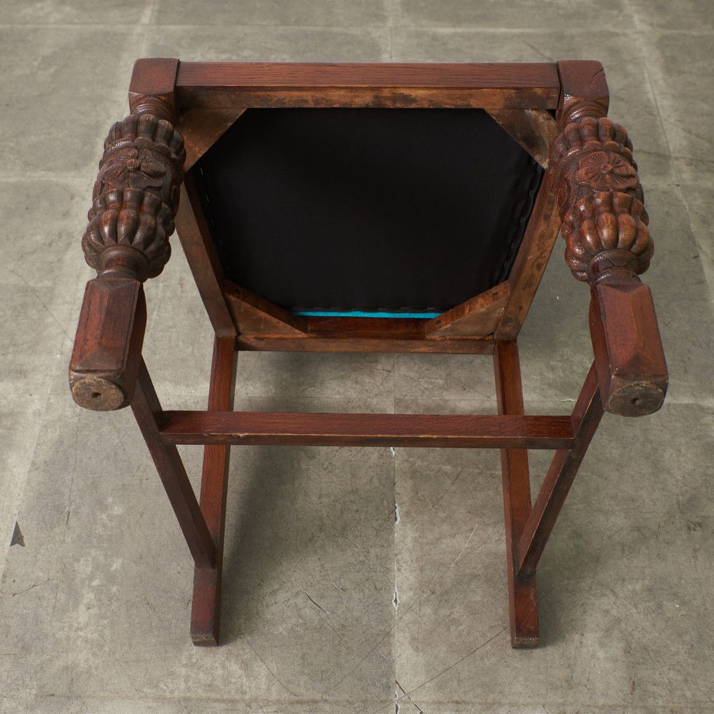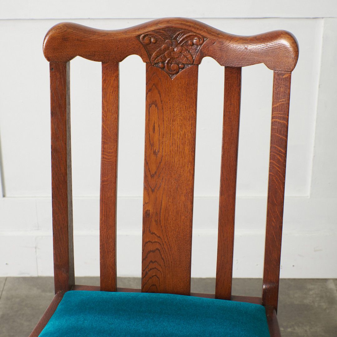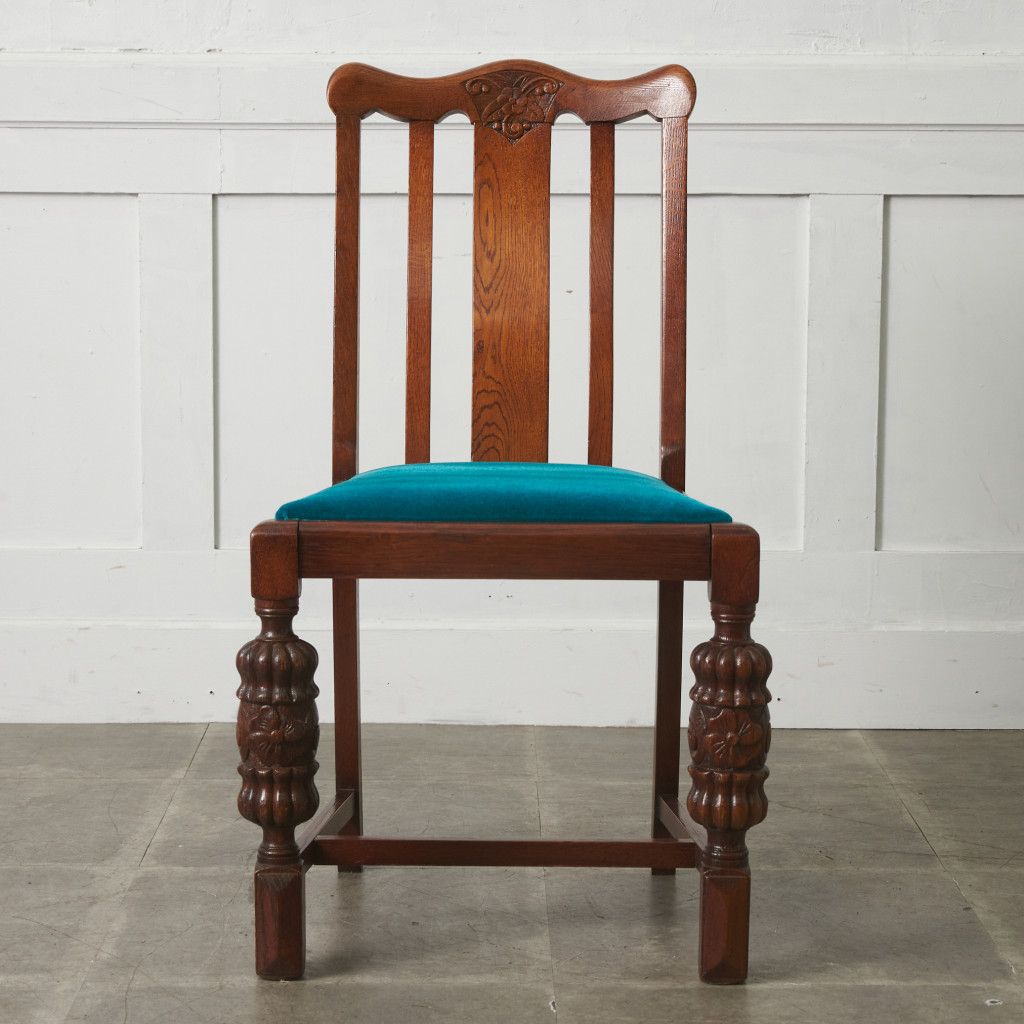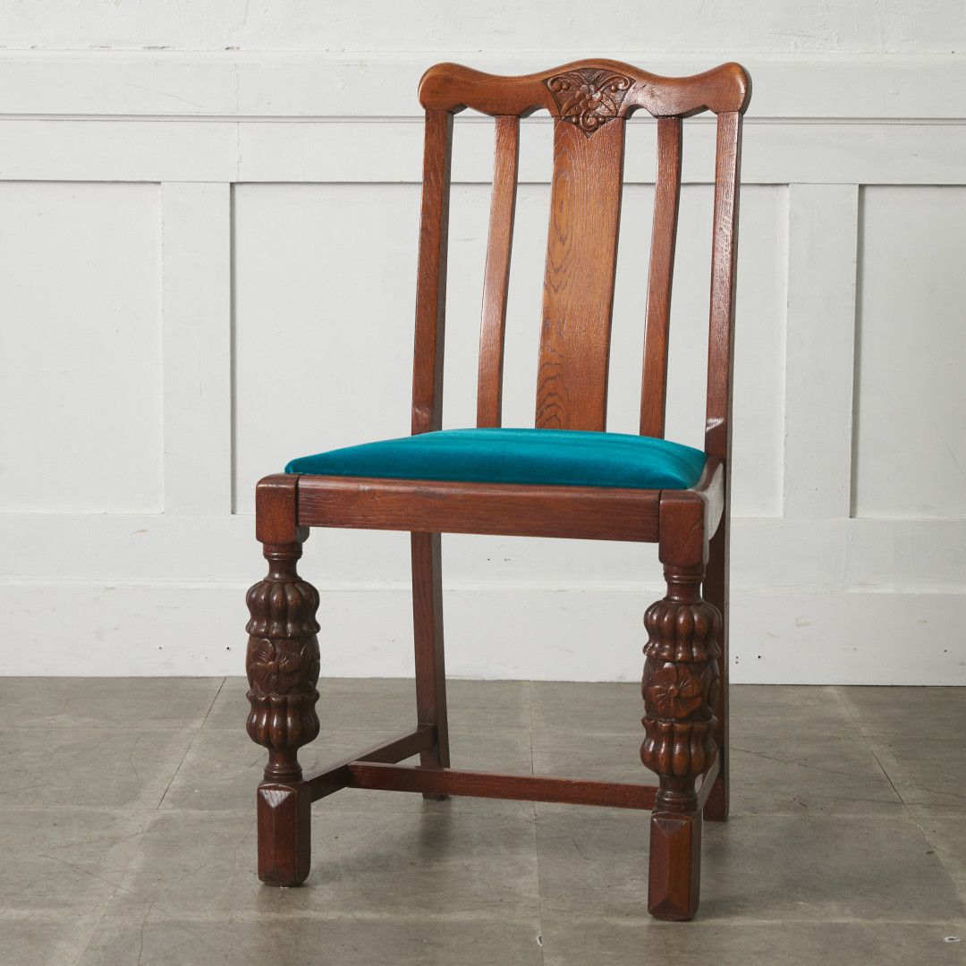背もたれの柔らかなフォルムや木彫刻、脚部に施されたバルバスレッグが美しい上品なダイニングチェア。古き良き西欧の伝統を感じさせるクラシカルなデザインで、使い込まれて程よく古びた風合いが素朴で優しい雰囲気を演出します。