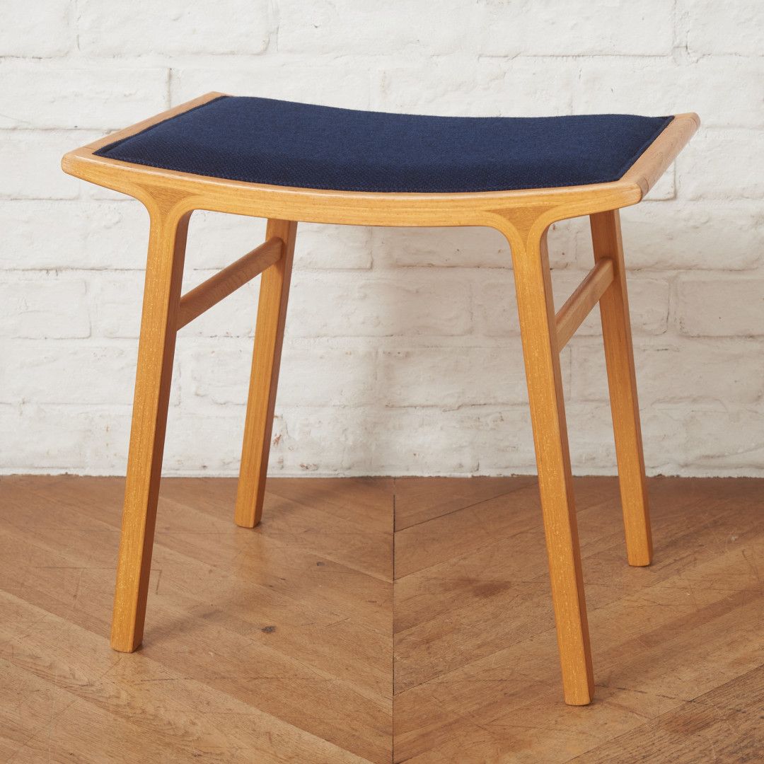 デザイナー剣持勇が創設した、剣持デザイン研究所によってデザインされたスツール。無垢材の木片を成形合板と組み合わせる「コマ入れ成形」が用いられたクオリティの高いお品。洗練されたデザインで、用途や場所を選ばずにお使いいただけます。