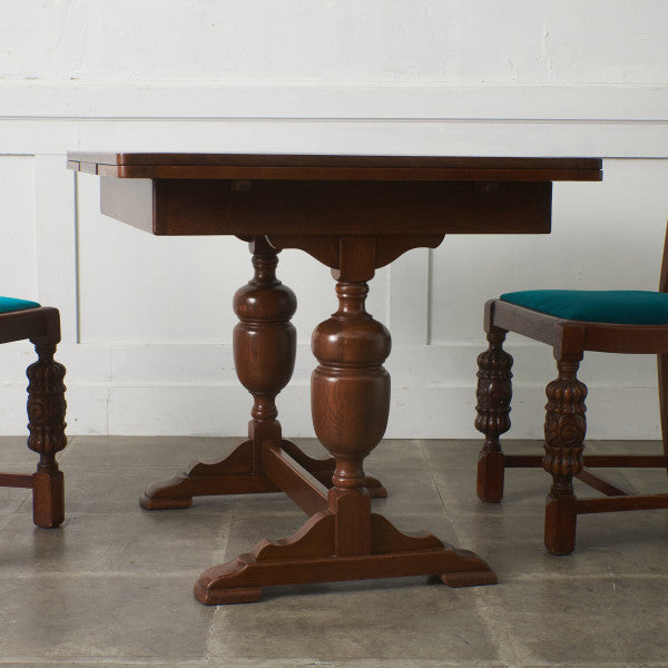 英国アンティークによる、バルボスレッグ ドローリーフダイニングテーブルです。