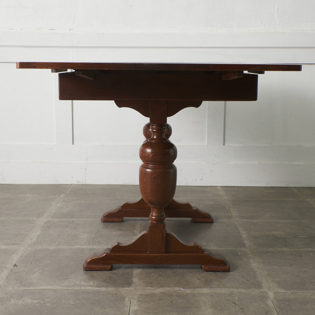 バルボスレッグなど随所に美しいディテールを備えたクオリティの高いダイニングテーブル。古き良き西欧の伝統を感じさせるクラシカルなデザインと、使い込まれて程よく古びた風合いが素朴で優しい雰囲気が魅力です。