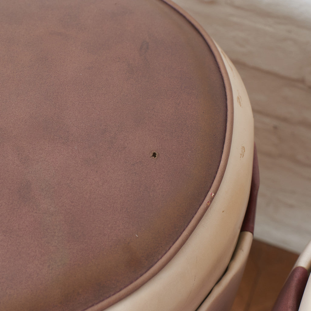 パッチワークレザーがアクセントを添えるチェア。懐かしさを感じるレトロな雰囲気で、インテリアコーディネートのポイントとして活躍します。