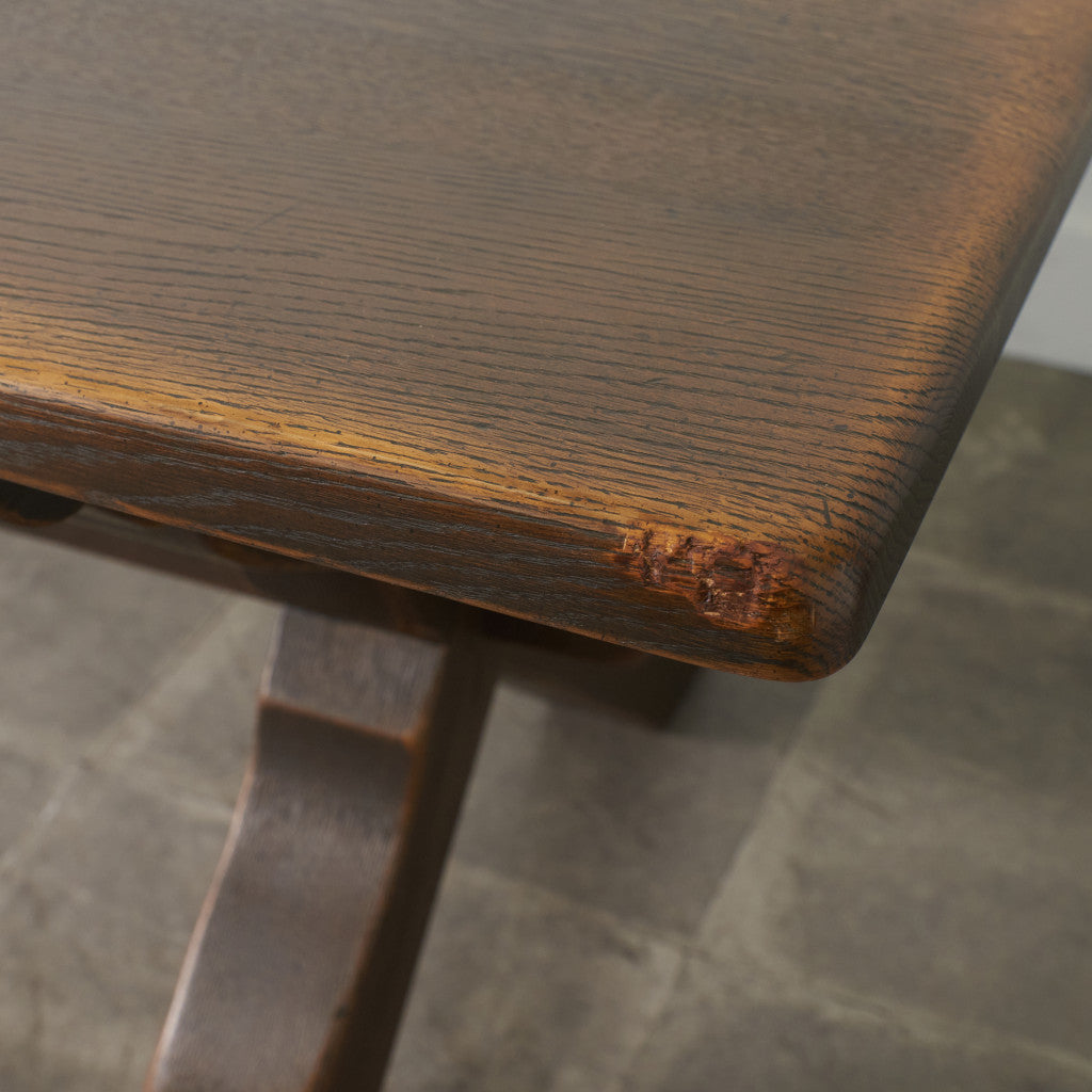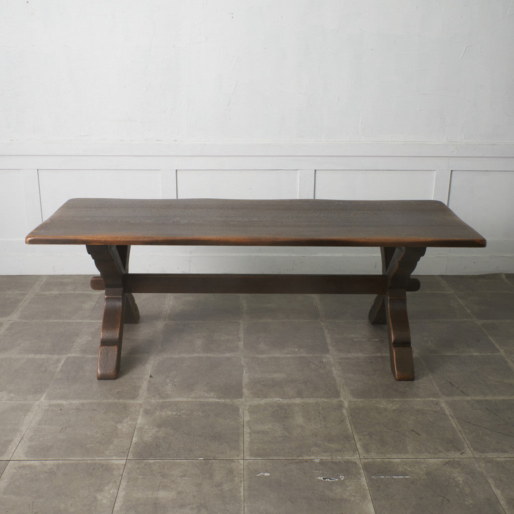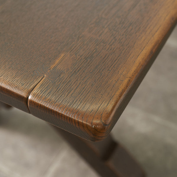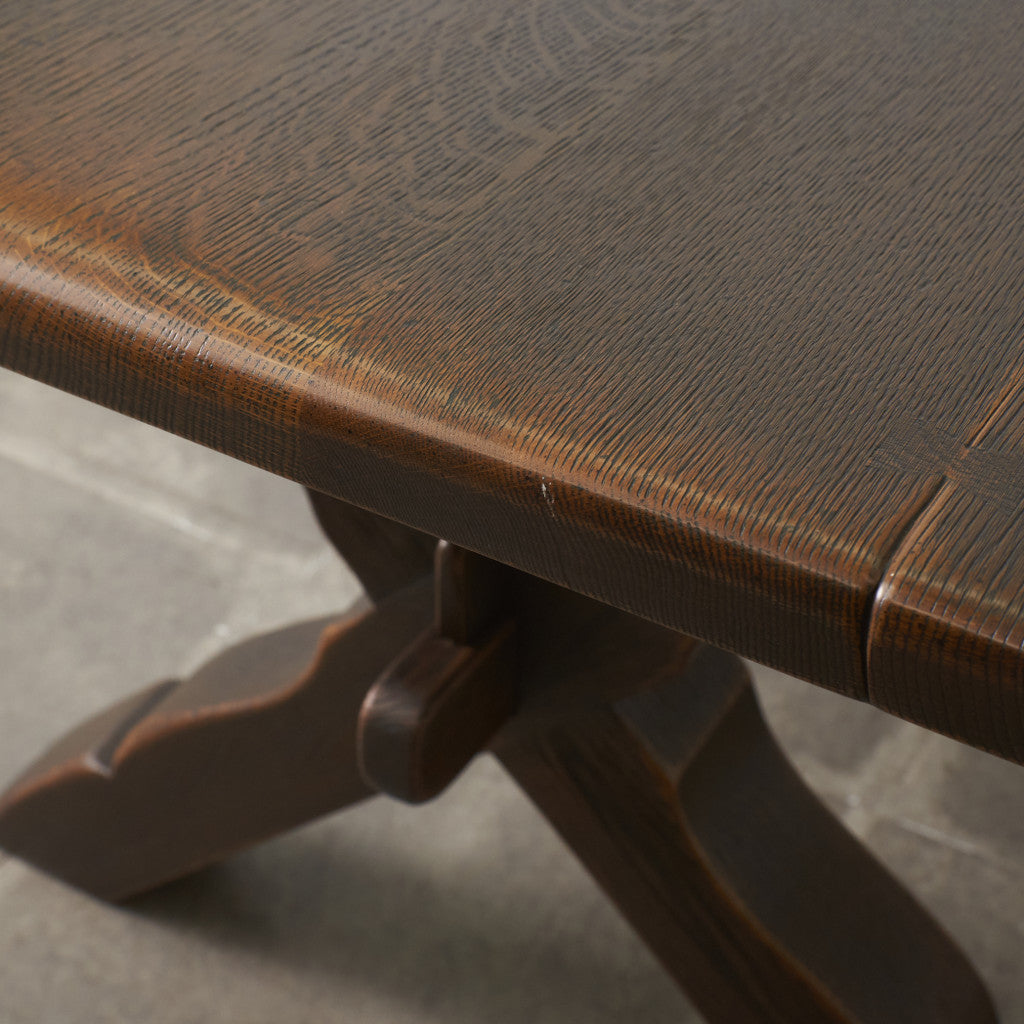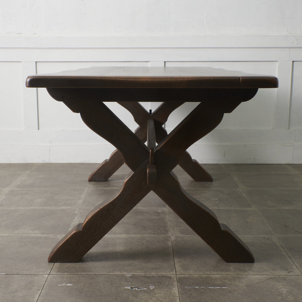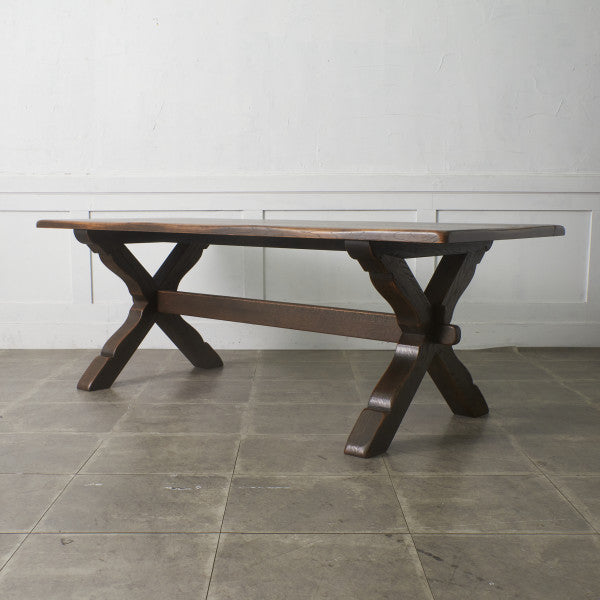 良質なオーク無垢材を使用した、「居酒屋風」の意味をもつタバーンテーブル。力強くX型に組まれた脚が特徴的で、ドッシリとした作りとおおらかなデザインのお品です。