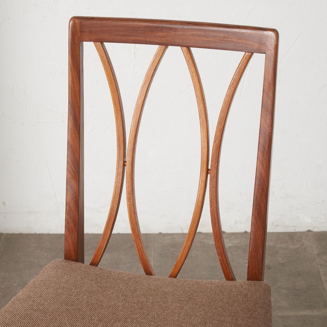 イギリスにおいてミッドセンチュリーを代表するブランド G-PLAN(ジープラン) による、Victor Bramwell Wilkins(ビクター・ブラムウェル・ウィルキンス ) デザイン、Fresco(フレスコ) エックスバックダイニングチェア(カーブバックチェア4556D) / 張替済です。