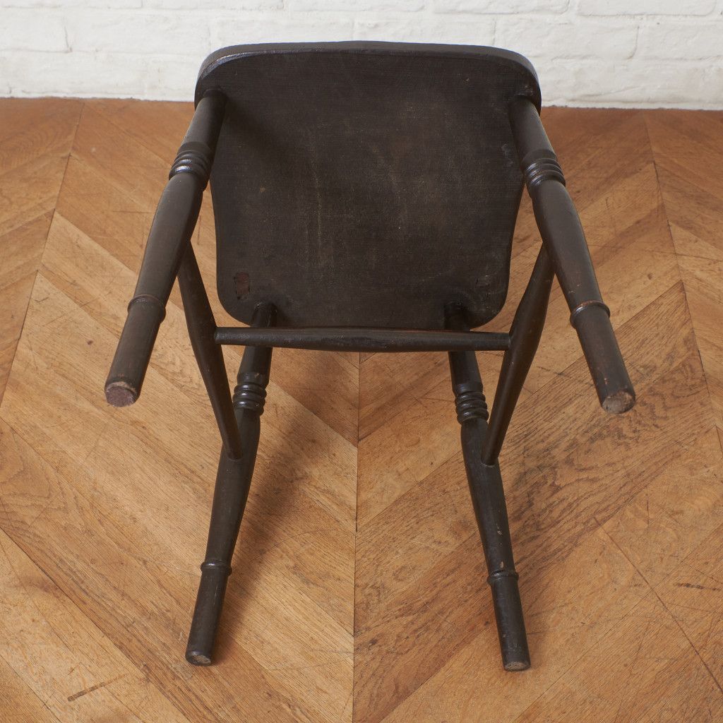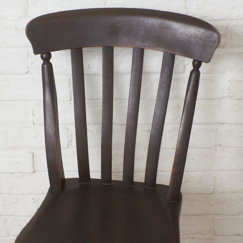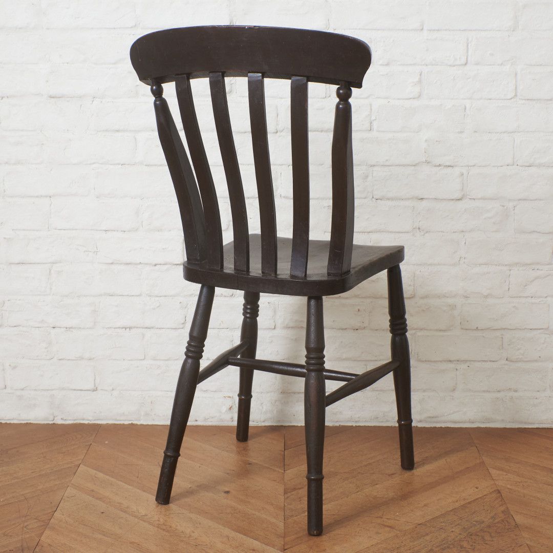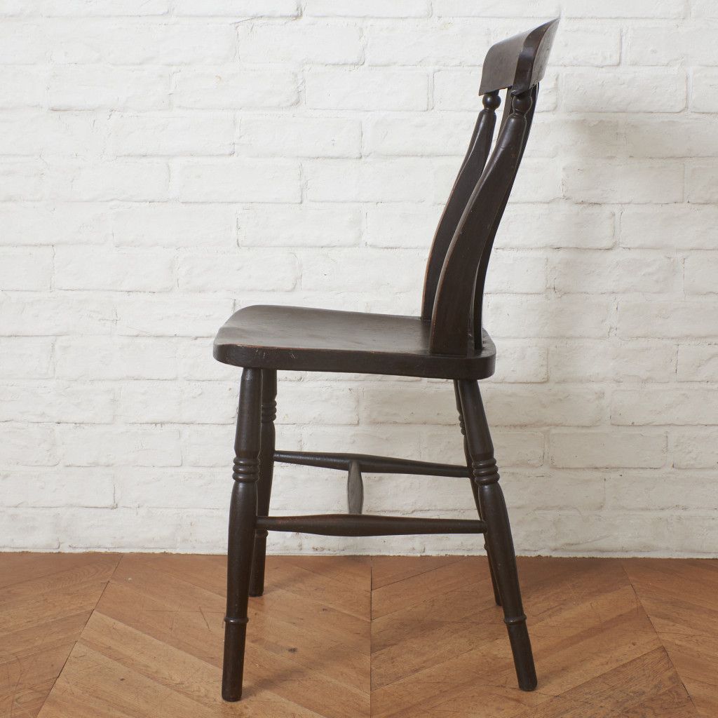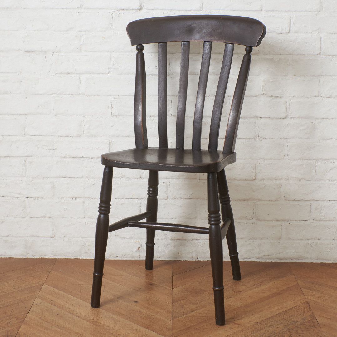 背もたれや脚の挽物装飾が印象的なチェア。使い込まれた木肌の質感や手仕事と経年変化による歪み、無垢材を用いたアンティーク家具ならではの存在感のあるお品です。グリーンとも相性がよく、ディスプレイとしてもお楽しみいただけます。